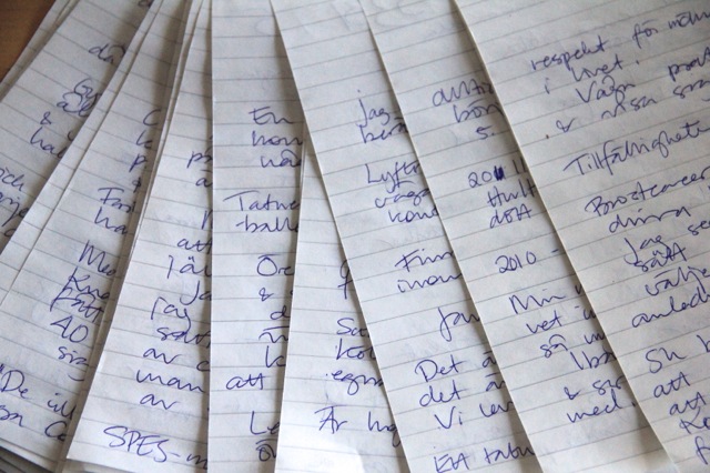 Jag kan också gå en promenad i vinterkylan och få en massa kloka idéer när hjärnan syresätts på det där friska sättet som aldrig händer framför datorn. Idéer som så snart jag kommer hem antecknas på små lappar eller skrivs in ett dokument.