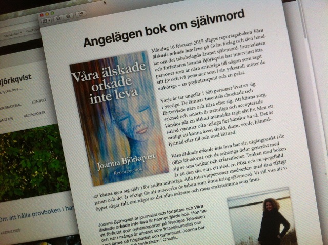 Och varje gång jag berättar om boken Våra älskade orkade inte leva och säger att den släpps den 16 februari känner jag mig som en säljare i tjänst.