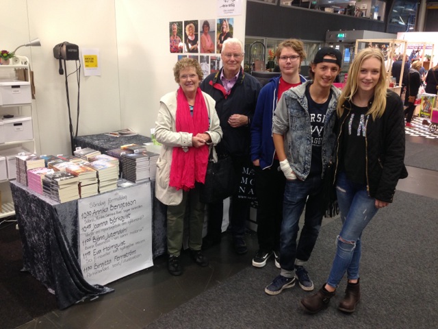 På förmiddagen fick jag finbesök i montern av min underbara familj och de var så snälla att de med hög och klar stämma sjöng för mig i montern och fick alla runt omkring att le vänligt åt mitt håll. Skojigt!