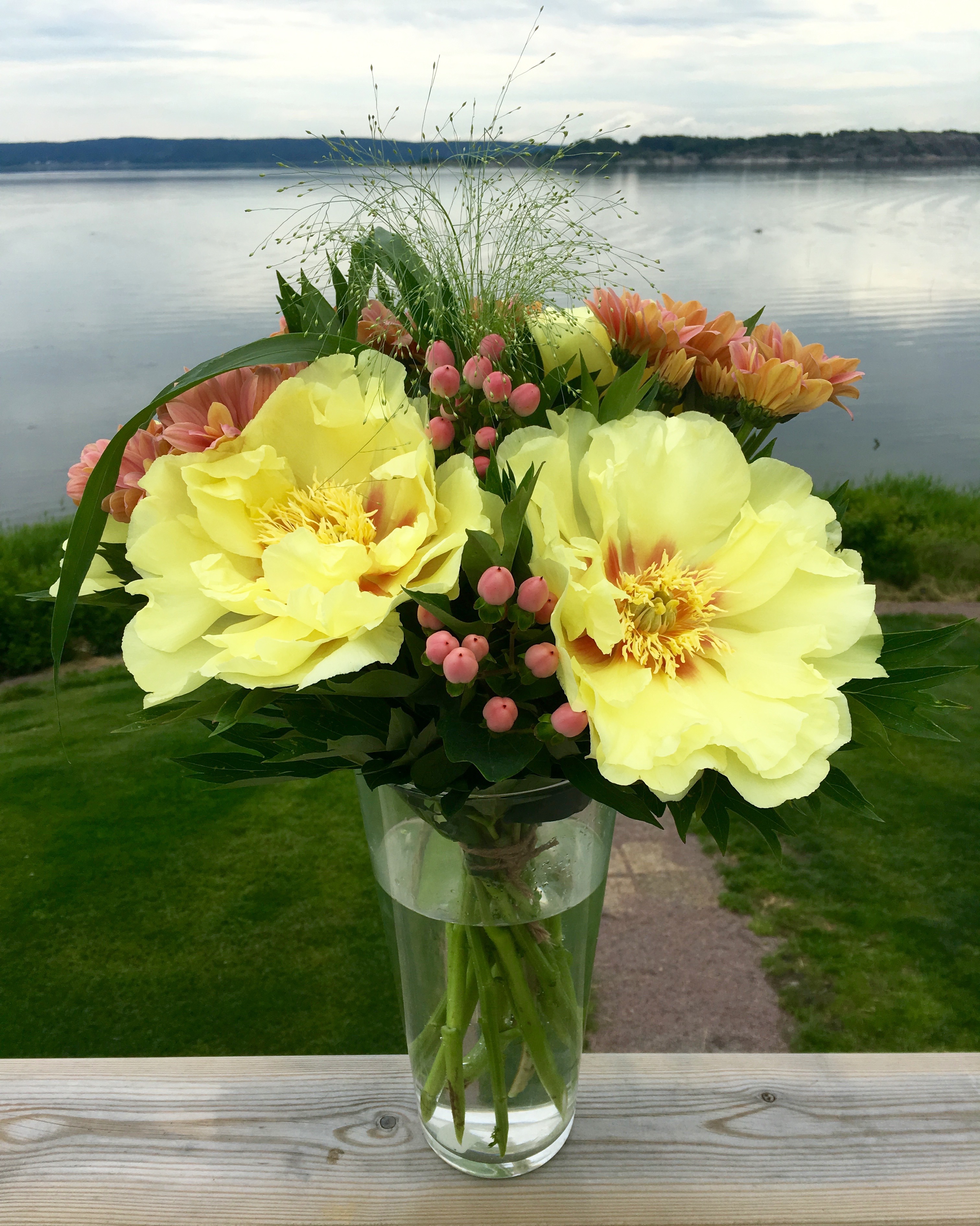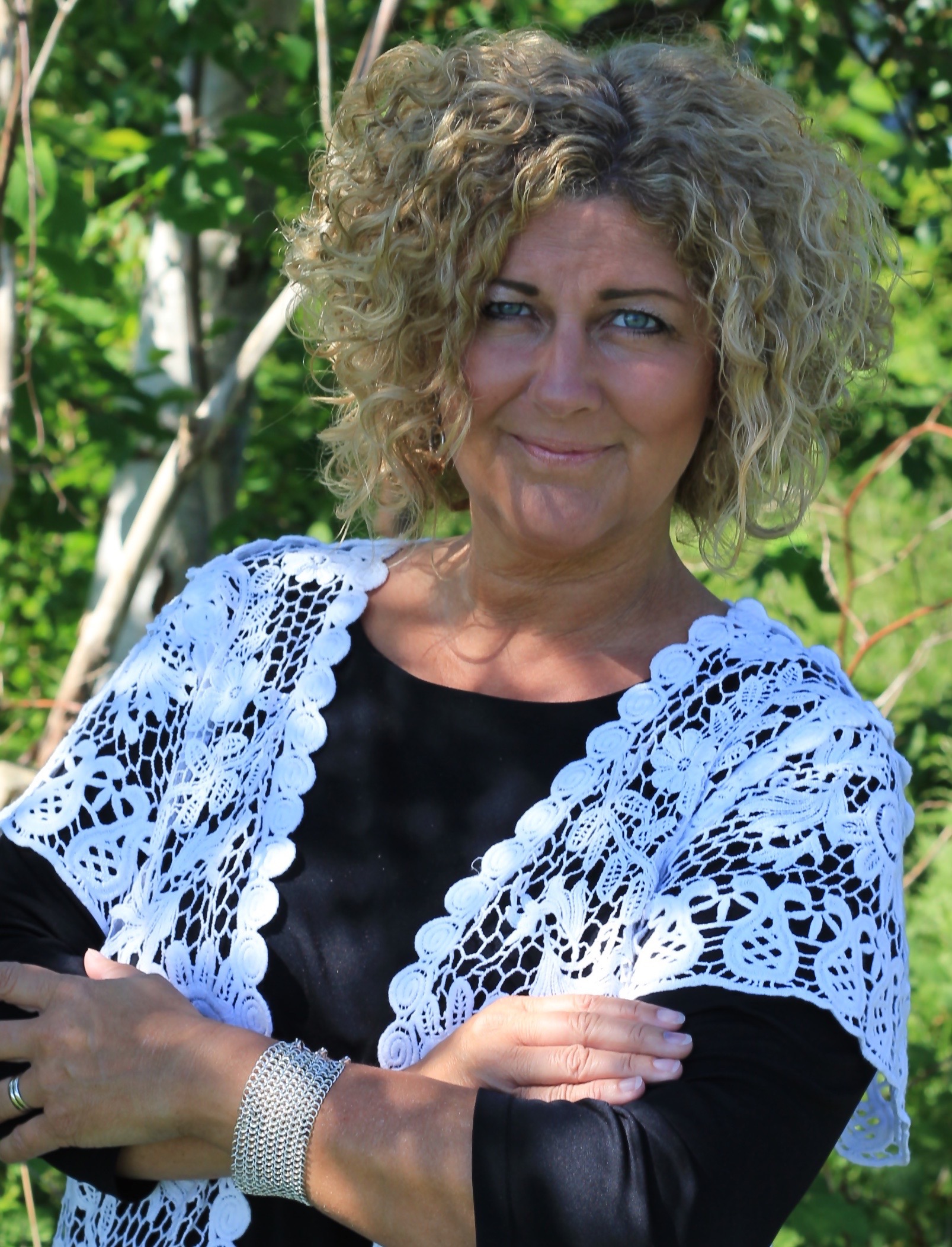 Idag var det strålande sol. Men åtminstone vindstilla. Alltid något. Vid tiotiden på förmiddagen tog jag mig en tur i trädgården för att hitta lite skugga där vi kunde ta bilden. Vi har sågat ner nästan alla träd på tomten, men ett par har vi kvar och där tänkte jag att det kunde passa att ta några bilder.