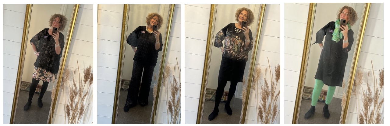 På Bokmässan är det alltid varmt och fullt av folk så det gäller att klä sig hyfsat svalt och att ha bra skor. Det är mitt bästa tips oavsett om man ska stå i monter hela dagarna eller mest flanera runt. Jag brukar alltid lägga upp ett inlägg på Instagram hur jag klär mig för dagen, så jag är lätt att hitta på mässgolvet. Så här såg jag ut i år. Svart var helt klart basfärgen och lustigt nog var det inget jag direkt reflekterade över när jag stod och velade vid garderoben på morgonkvisten. Men glitterbyxorna, som är helt fulla av paljetter, är faktiskt bruna, även om varken paljetterna eller färgen syns speciellt bra på bild nummer två.