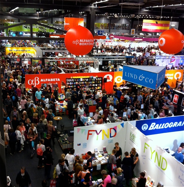 Några besökare nöjde sig med att prata lite (bland annat om mitt rosa omslag), medan somliga handlade direkt av oss. Andra kom tillbaka efter en liten stunds vandring i lokalen och köpte böckerna en aning senare. Rätt smart faktiskt, eftersom böcker är tunga att bära på och vi inte hade tänkt att smita innan mässan var slut.